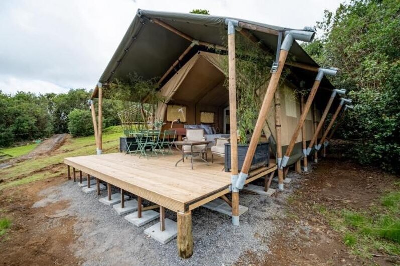 Jedes Glamping-Zelt erstreckt sich über 35 Quadratmeter und ist so gestaltet, dass es den Komfort eines Boutique-Hotels bietet, während das Gefühl, der Natur nah zu sein, erhalten bleibt. Der Raum umfasst ein gemütliches Schlafzimmer mit einem Queensize-Bett und optionalem Kinderbett, einen Wohnbereich zum Entspannen sowie einen Ankleideraum für zusätzlichen Komfort. Das Badezimmer verfügt über eine moderne integrierte Dusche, und die Toilette ist separat für mehr Privatsphäre.